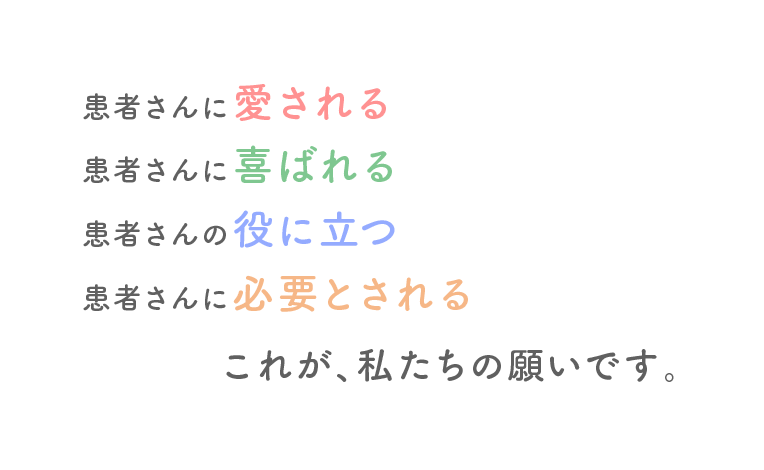 私達は「Smile for Life!!」をキーコンセプトに、患者様の笑顔をサポートしたいと思います。